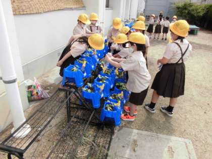 1年生は登校してきたら、アサガオに水やりをしています。5月7日に種をまいてから、ずっと世話をがんばっています。最近は本葉が出てきています。ずいぶんと成長してきました。種をまいてから30〜60日で花が咲くそうです。1年生は成長の様子を観察して「みつけたよカード」に記録しています。一部を紹介します。