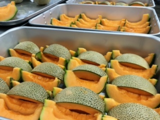クインシーメロンは、本日は茨城県産のものが、1人に1/8切れ付きました。