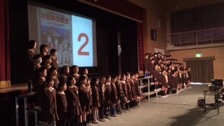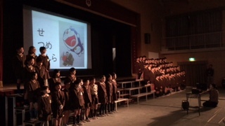 今日は3年生が図書の発表をしました。初めに「日本十進分類表」を見せた後、「この本は何番の分類になるでしょう?」というクイズを出していきました。既に授業で学習している学年の子どもたちはいっぱい手を挙げて「2番」というように答えていました。