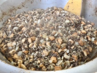 すき焼き煮は、具材に牛肉、ふ、糸こんにゃく、あつあげ、たまねぎ、えのきたけが入った炒め煮料理でした。