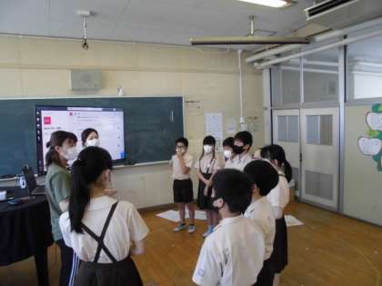 非常事態宣言中で、全校児童が集まれないので、今日は、Teamsを使って集会委員会A班が集会を進行しました。内容は「イントロドン」です。イントロを聞いて、正解を3択の中から選び、指で何番かを回答する方法です。事前に正解を書いたポスターを用意したり、休み時間に集まって練習したりして、準備をしてきました。