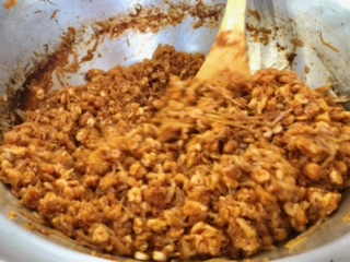 中、下段の写真は、えびのチリソースの調理の様子です。