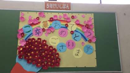 校内も各学年が作った「卒業おめでとうございます」の掲示物が飾られています。明日18日(水)は、1,2,3,4,6年生は給食終了後に下校し、5年生は5時間目に卒業式準備をして下校します。下校後は安全に過ごせるようにお願いします。