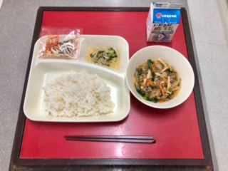 6月25日(金)の献立は「ごはん・牛乳・マーボーはるさめ・チンゲンサイともやしの甘酢あえ・アーモンドフィッシュ」でした。/The school lunch menu for Friday, June, 25th was "Steamed Rice, Milk, Mapo Harusame, Sweet and Sour Bok Choy and Bean Sprouts, Almond Fish".