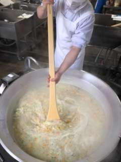 豆乳スープは、ベーコン、にんじん、たまねぎ、コーン、豆乳等を使用した洋風の汁ものでした。
