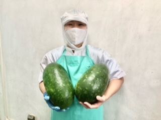中段の写真は、本日使用したとうがんです。とうがんは長く保存でき、冬に食べることが出来ることから「冬瓜」と書きます。