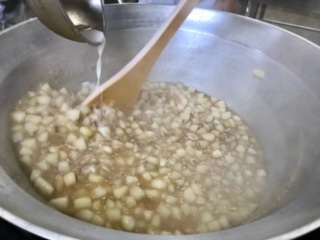 下段の写真は、とうがんの煮ものの調理の様子です。