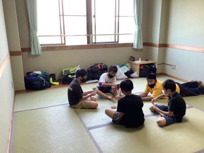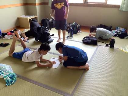 順番に入浴していますが、待っている間に葉書を書いたり、部屋の仲間で遊んでいます