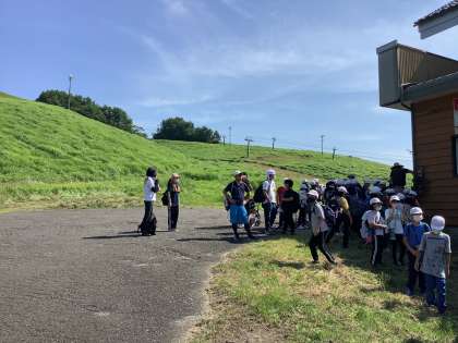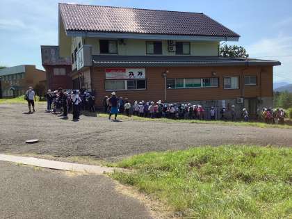 登る前に水分補給です。