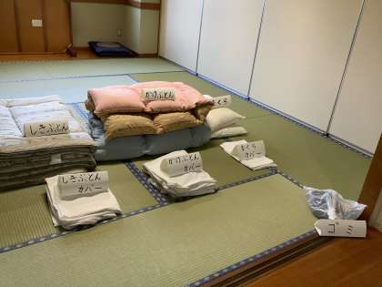 部屋に戻るときには、布団の片付け方例を見てから上がるようにしています。