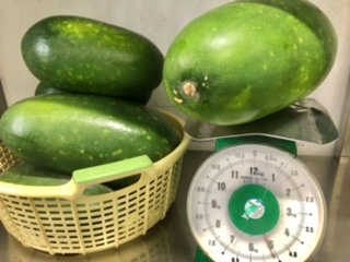 中、下段の写真は、本日使用した冬瓜です。大きいものは1つで、約5キログラムありました。