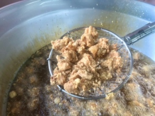 下段の写真は、たつたあげを揚げている様子です。