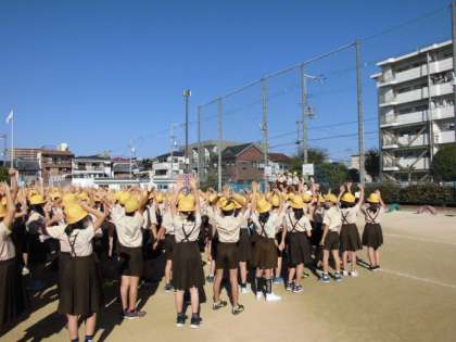 2枚目の写真は、5年生の列の写真です。さすがに5年生ともなると、「はい、手を下ろしてください。」という引っかけのコメントにだまされて手を下ろす子は少なかったです。