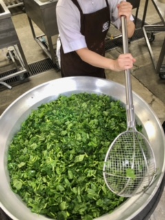 下段の写真は、ほうれんそうを茹でている様子です。ほうれんそうのおひたしは、茹でたほうれんそうを砂糖、しょうゆで作ったたれで和えた和えものでした。