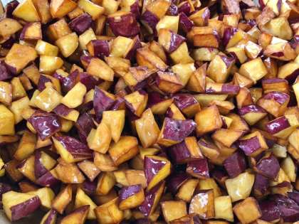 大学いもは、油で揚げたさつまいもに、砂糖、塩、しょうゆ、水で作った蜜をかけた和風のデザートでした。