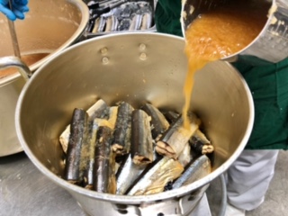 中、下段の写真は、さんまのみぞれかけで調理の様子です。