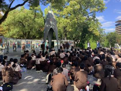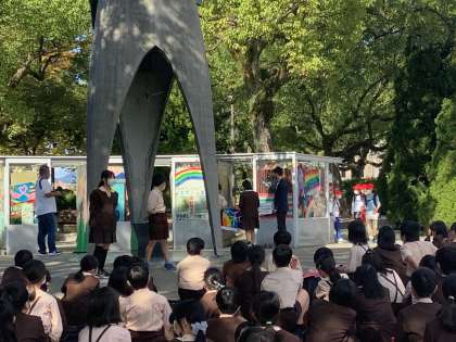 代表の児童から、千羽鶴を納めたあと、平和宣言をしました。