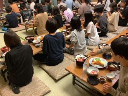 鉄板焼きの焼き肉に子どもたちのテンションも上がっているようです。