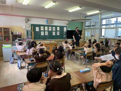 2年1組と4組ではC-NETのMark先生(9月と10月のみ来られています)と英語の学習をしました。元気に英語であいさつをした後、動物の名前の言い方を練習してペアで「キーワードゲーム」を楽しみました。次に果物や野菜の言い方を練習して"What's missing?"というゲームをしました。最後にハロウィンにちなんで"Go away BIG GREEN MONSTER"と言う絵本を読んでもらいました。