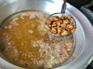 みそカツは、パン粉をつけて揚げた豚肉に、八丁みそ、赤みそ、砂糖、みりん、水溶きでんぷんで作ったみそだれをかけた揚げものでした。「八丁みそ」の「八丁」は愛知県にある岡崎城から、西へ八丁(約870m)離れた村で作られていたことに由来するそうです。