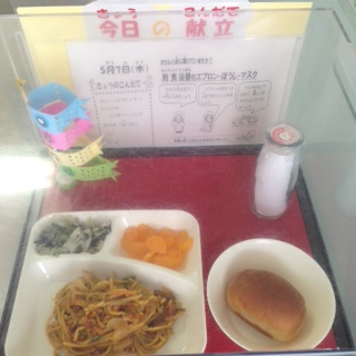 カレースパゲッティは児童に大変好評な献立で返却された食缶もほとんどが空っぽでした!