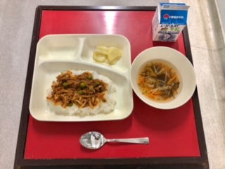 10月29日(金)の献立は「タコライス・牛乳・もずくのスープ・焼きじゃが」でした。