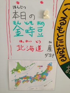 今日の献立の「金時豆のおこわ」は給食では珍しい献立でした。金時豆はドライパックされた北海道産の金時豆を使用し鶏肉、もち米、うすあげ、しめじ、調味料を合わせて作りました。