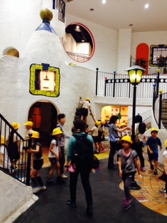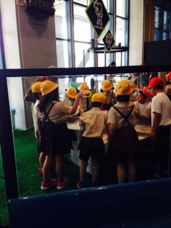 予想もしなかった5月に台風が去った後、青空の下遠足に行くことができました。午前中は、JR天満駅近くにあるキッズプラザ。子どもたちは各班ごとに分かれていろんなコーナーを回りました。やってみたい科学・文化ワークショップや不思議がいっぱいの遊ぼうコーナーやものを作ろうスペースもあり、子どもたちはあちこちで歓声を上げていました。