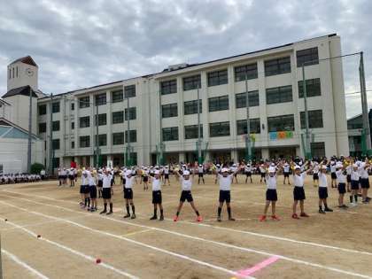 1年生は「みんなを幸せに」、2年生は「さきほこれ! 2年の華」、3年生は「OLA!! 〜君に会えてよかった〜」のテーマで団体演技を行いました。