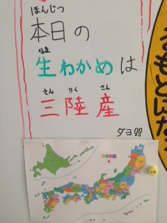 本日の献立は「赤魚のしょうゆだれかけ・みそ汁・わかたけ煮・米飯・牛乳」でした。