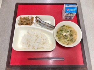 11月18日(木)の献立は「ごはん・牛乳・焼きししゃも・五目汁・きんぴらごぼう」でした。
