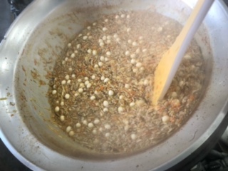 中華丼は豚肉、うずら卵、はくさい、たまねぎ、たけのこ、にんじん、しいたけが入った中華風味のどんぶりでした。また、この献立は「うずら卵」の個別対応用献立で卵アレルギーの児童でも食べられるように配慮された献立でした。