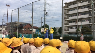5月18日(月)全校朝会に鶴見区安全パトロールの方が来て、お話をしてくださいました。