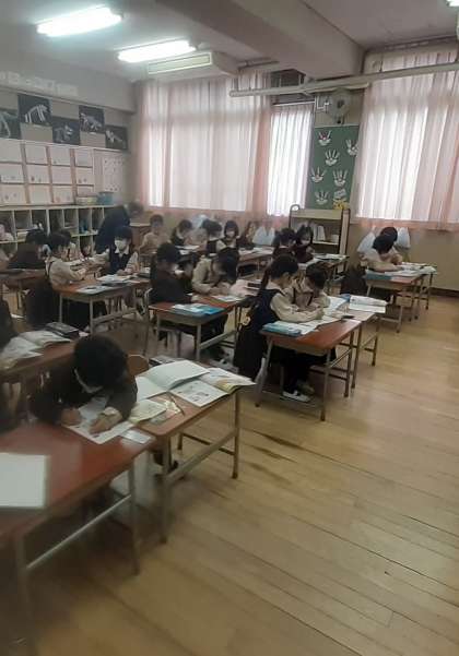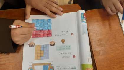 算数の「どちらがおおい・どちらがひろい」の学習で、じんとりゲームをしました。