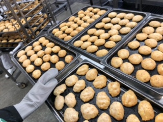 とうふハンバーグはツナ、とうふ、たまねぎをでん粉、砂糖、塩、しょうゆと混ぜ合わせ、1人1個に成形したものを蒸し焼きにした焼き物機料理でした。教室でケチャップをかけて食べました。