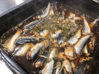 いわしのしょうが煮はいわしを水、千切りしょうが、切りこんぶ、砂糖、米酢、しょうゆ、料理酒で作った調味液と合わし、蒸し焼きにした煮魚料理でした。