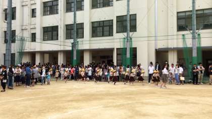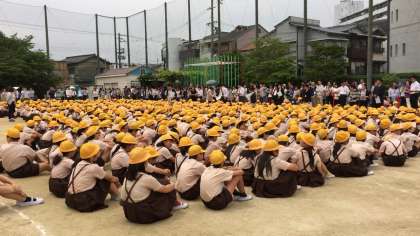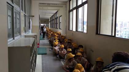 10:45の「地震による避難訓練をします。」の放送で子どもたちはまず机の下に避難しました。次の「地震がおさまりました。運動場に避難しましょう。」の放送では全学年がスムーズに運動場に集合しました。続けて津波に対する訓練ということで全員が校舎の4階に避難しました。その後、放送でお家の人に教室にお迎えに行っていただいて一人ずつ「親子下校」をしました。初めての試みでしたが、お家の人のご協力でスムーズに下校できました。これからも学校と家庭が協力して危機意識を共有していきたいと思います。