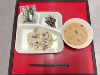 明日の献立は「黒糖パン・鶏肉のオイスターソース焼き・ワンタンの皮ととうふのスープ・チンゲンサイとコーンの中華あえ」です。明日の給食も楽しみにしてくださいね。