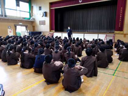 6時間目、6年生全員が体育館に集合し、教頭先生から携帯電話やスマートフォンを用いたSNSの使い方についてお話を聞きました。みんな真剣な表情で一生懸命、教頭先生の話に耳を傾けていました。以前、学年内で起こった動画、SNSのトラブルについても振り返り、安易な動画投稿の危うさや、投稿には責任が伴うということについて6年生全員で共有、確認することが出来ました。また中学生に向けて、情報の取り扱いについて自分がどうするべきなのかを考えることができました。
