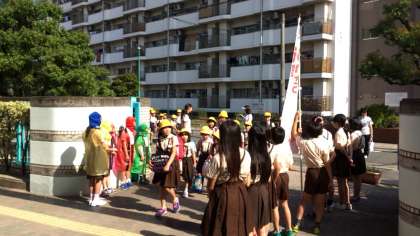 全校朝会では校長先生から、まず土曜授業の避難訓練が整然と行われたことをほめていただきました。次に子ども会のキックベースボールとソフトボールが良い成績をおさめたことの表彰がありました。