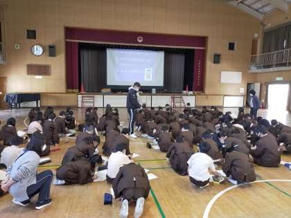 韓国・朝鮮のソンセンニム(先生)に来ていただいて、ハングル文字について教えていただきました。ハングルのできた経緯を聞き、日本語と似ているところや違うところについてゲームをしながら考えました。最後には自分の名前をハングルで書いたり、読んだりもしました。児童からは、「難しかったけど楽しかった」といった声が挙がっていました。
