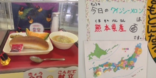 本日の献立は「カレードリア・キャベツのスープ・クインシーメロン・パン・牛乳」でした。