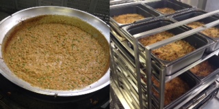 写真は上から「今日の献立・カレードリアの調理光景・クインシーメロンの調理光景」です!