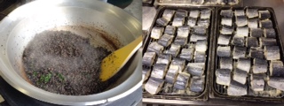 さごしは料理酒、塩で下味をつけた後、230度の温度で蒸し焼きにしました。