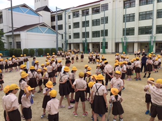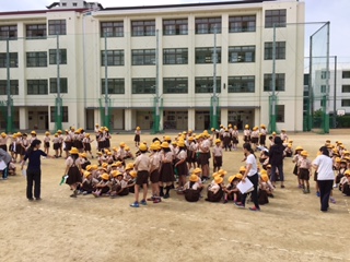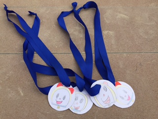 6月8日(月)1年生から6年生の全学年で構成する「なかよし班」の顔合わせの場である「なかよし集会」が11日(木)に行われます。それに向けて、今朝の全校集会の後で6年生が手作りの「メダル」を1年生に一人ずつ手渡しました。メダルにはそれぞれ1年生の名前が書いてあり、かわいい絵も描かれています。首にかけてもらった1年生はうれしそうに手に取ってながめていました。これから1年間このメダルをかけて児童集会に参加します。