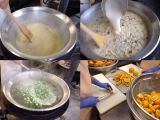 左上はかぼちゃのクリームシチューのルウを炒めている写真