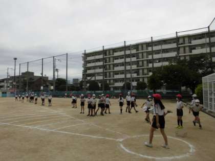 今日は体力テストの日です。1年生・4年生・6年生が新体力テストに挑んでいます。ソフトボール投げや反復横跳び、握力などを計測しています。目指せ!オリンピック!
