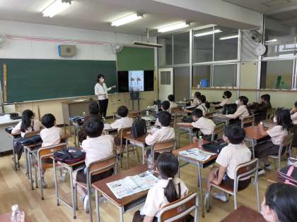 今日は、習字の用意を確認し、どのような準備が必要なのかを学習しました。来週から本格的に字を書く練習をしていこうと思っています。標準服が汚れることが予想されますので、気になる方はスモックか標準服の上から羽織ることができて汚れてもいい服を用意してくださいますようお願いいたします。