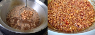 えびのチリソースの作り方はまず、えびに料理酒などの下味をつけ、でんぷんであげます。そして別の釜ににんにく、しょうが、トウバンジャンをサラダ油で香りを出してから玉ねぎを炒め、最後に調味料とあがったえびを合わせて完成です。