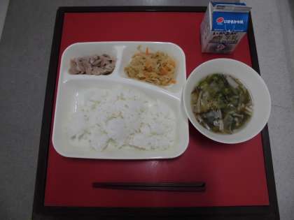 6月2日(木)の献立は「ごはん・牛乳・豚肉の甘辛焼き・もずくとオクラのとろり汁・切干しだいこんのいためもの」でした。